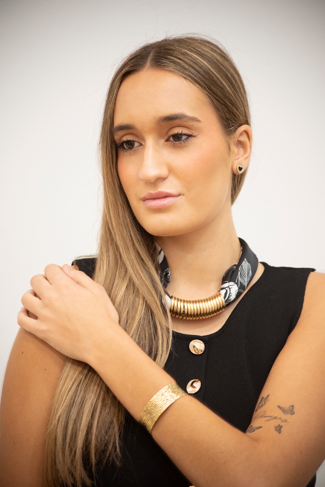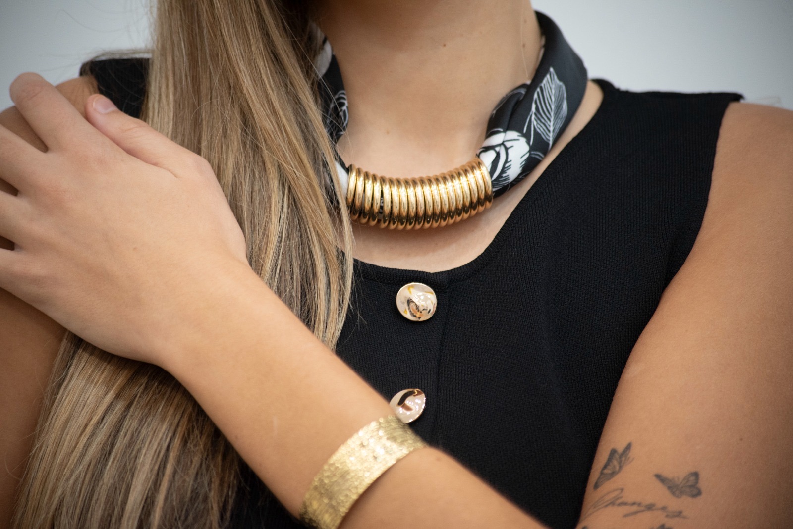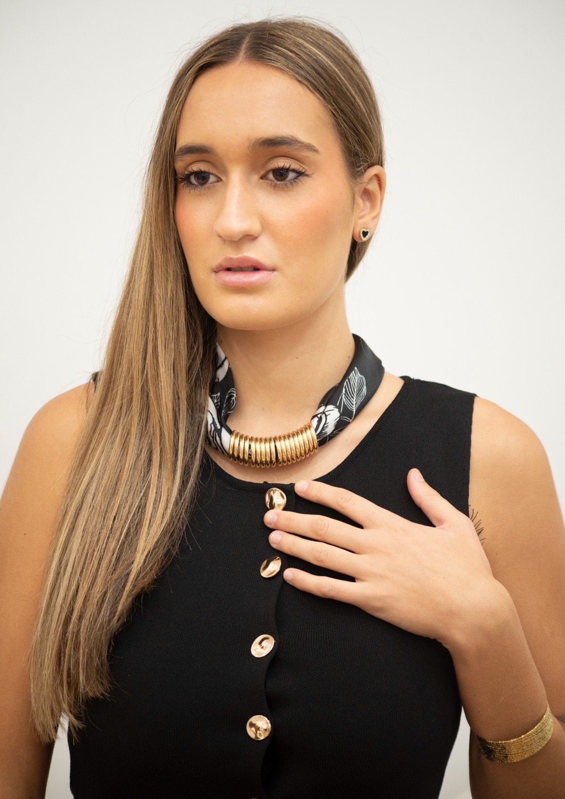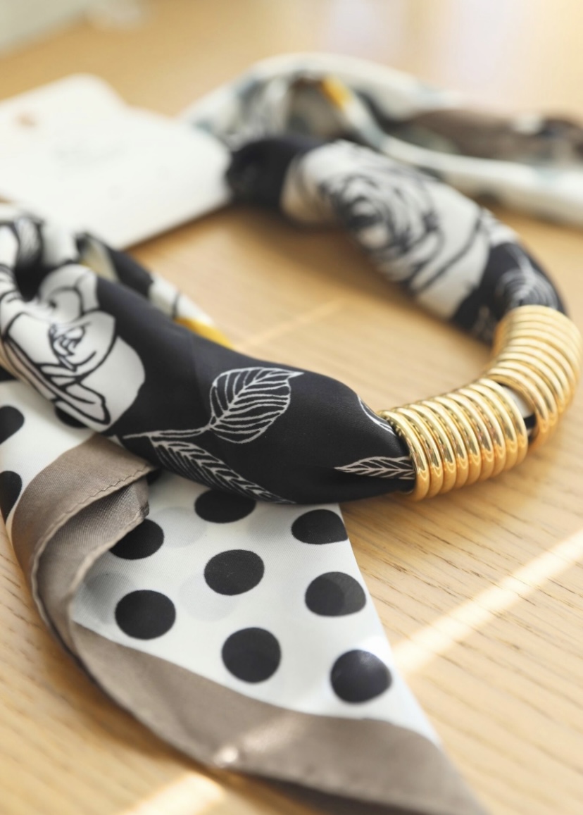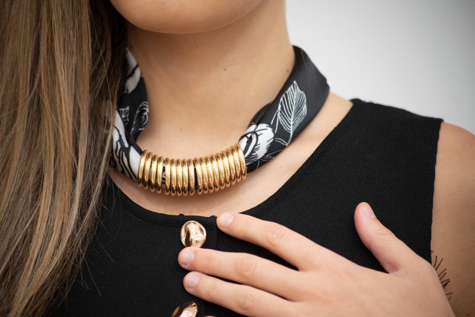 Collar de pañuelos con anillos dorados, perfecto para añadir un toque de moda a un look minimalista o para realzar los atuendos de noche.