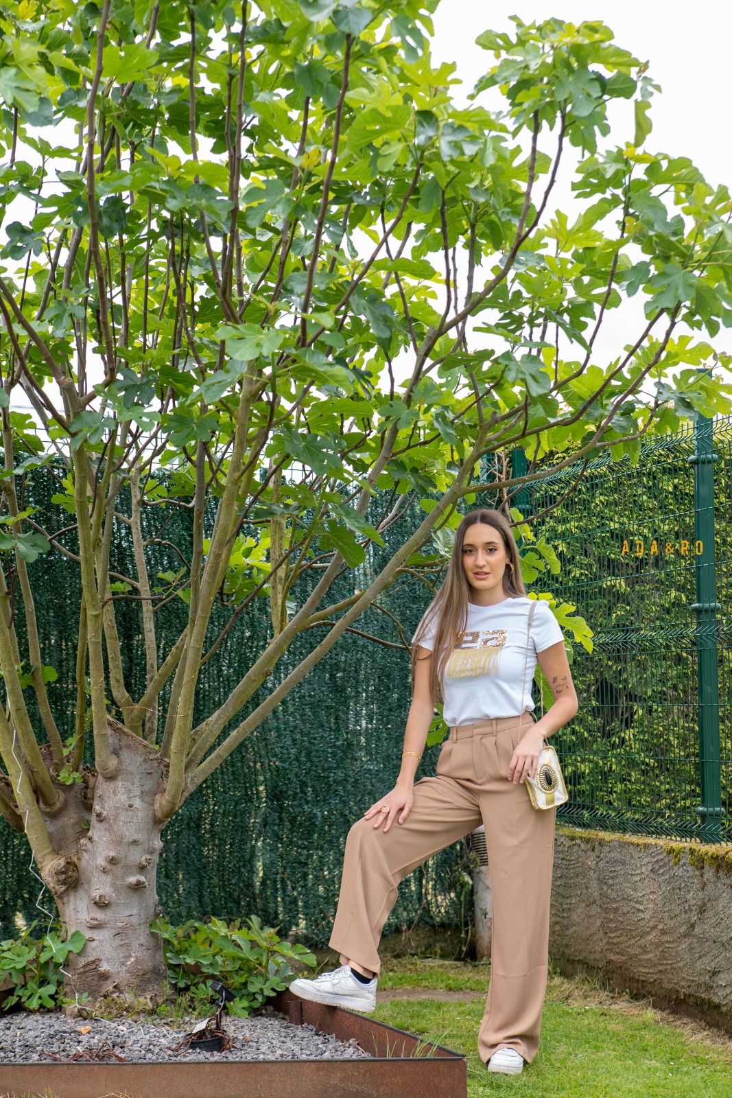 Pantalón ancho de pinzas con cierre de botón y cremallera delantera, bolsillos delanteros y tiro alto.