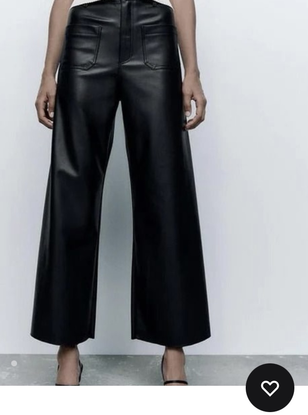 Pantalón de polipiel, tiro alto y elástico con bolsillos delanteros.