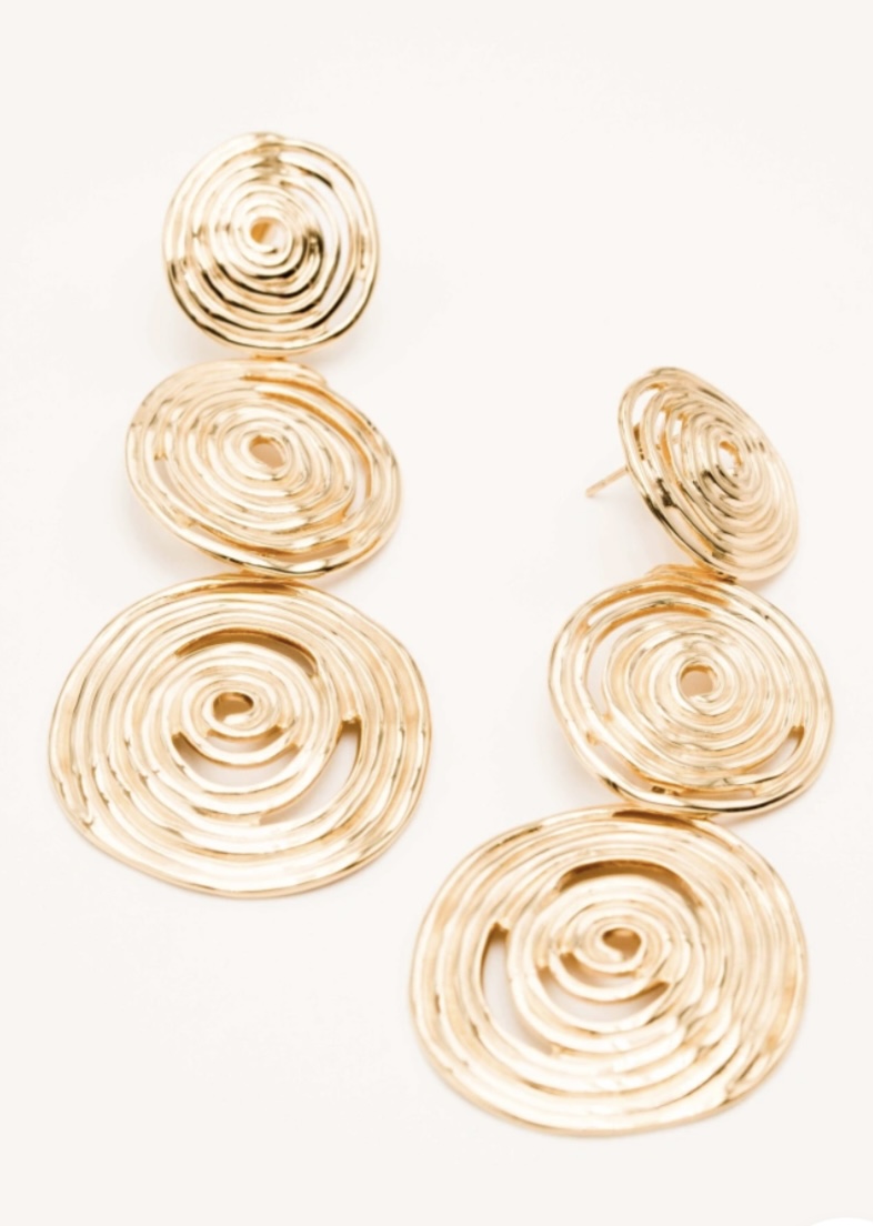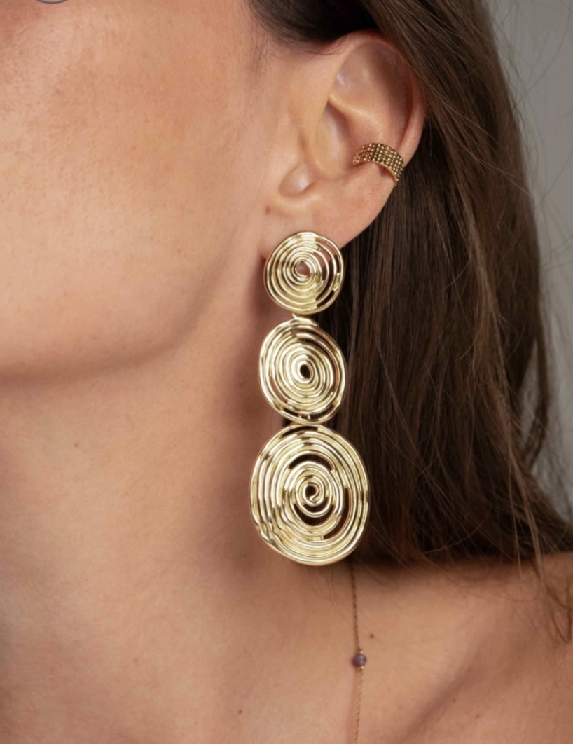 Pendientes colgantes de acero inoxidable compuestos por 2 inserciones redondas en forma de espiral.